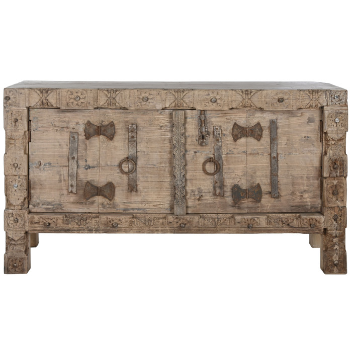 Medidas y características del modelo de la imagen: Aparador de 167 cm x 51 cm x 92 cm en madera maciza con acabado envejecido natural, con herrajes de hierro.
