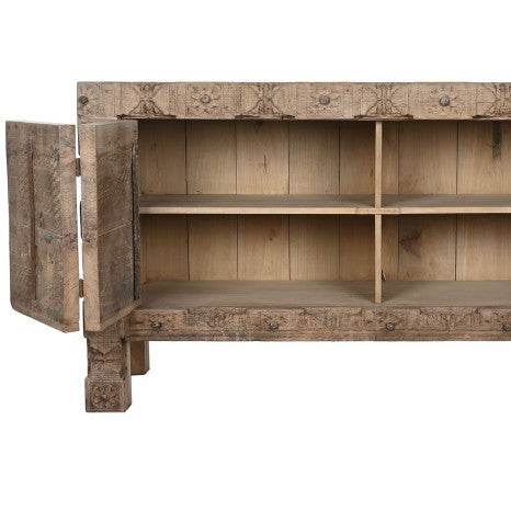 Diseñado para adaptarse a espacios con alma y personalidad, el Aparador Boera ofrece un amplio espacio de almacenaje mediante puertas frontales, combinando funcionalidad y un marcado estilo rústico. Su estructura robusta, sus proporciones equilibradas y sus detalles tallados lo convierten en una pieza ideal para el uso diario en hogares que valoran la autenticidad, la historia y los materiales nobles.