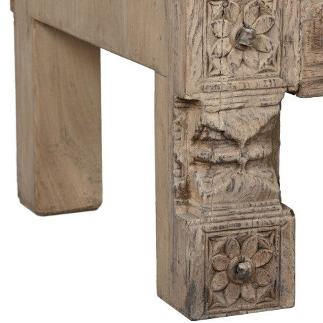 - Patas y marcos tallados con motivos geométricos y florales