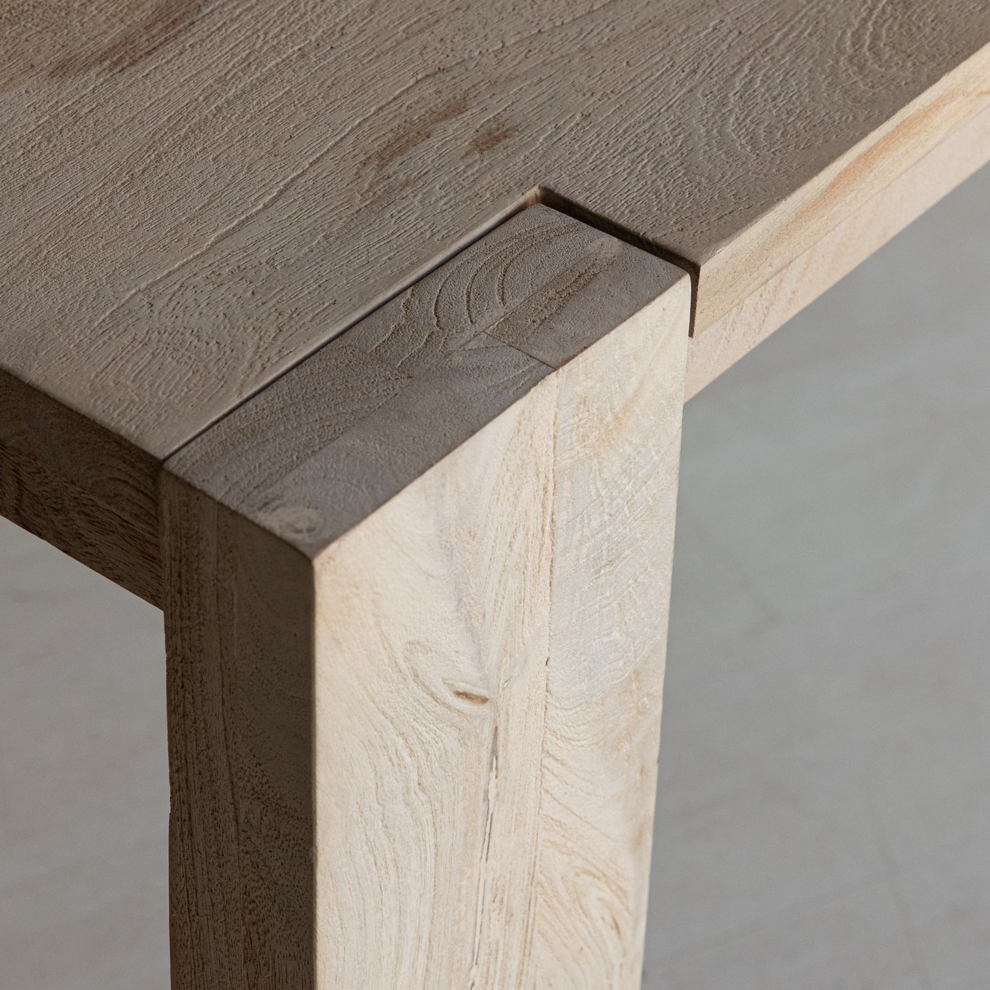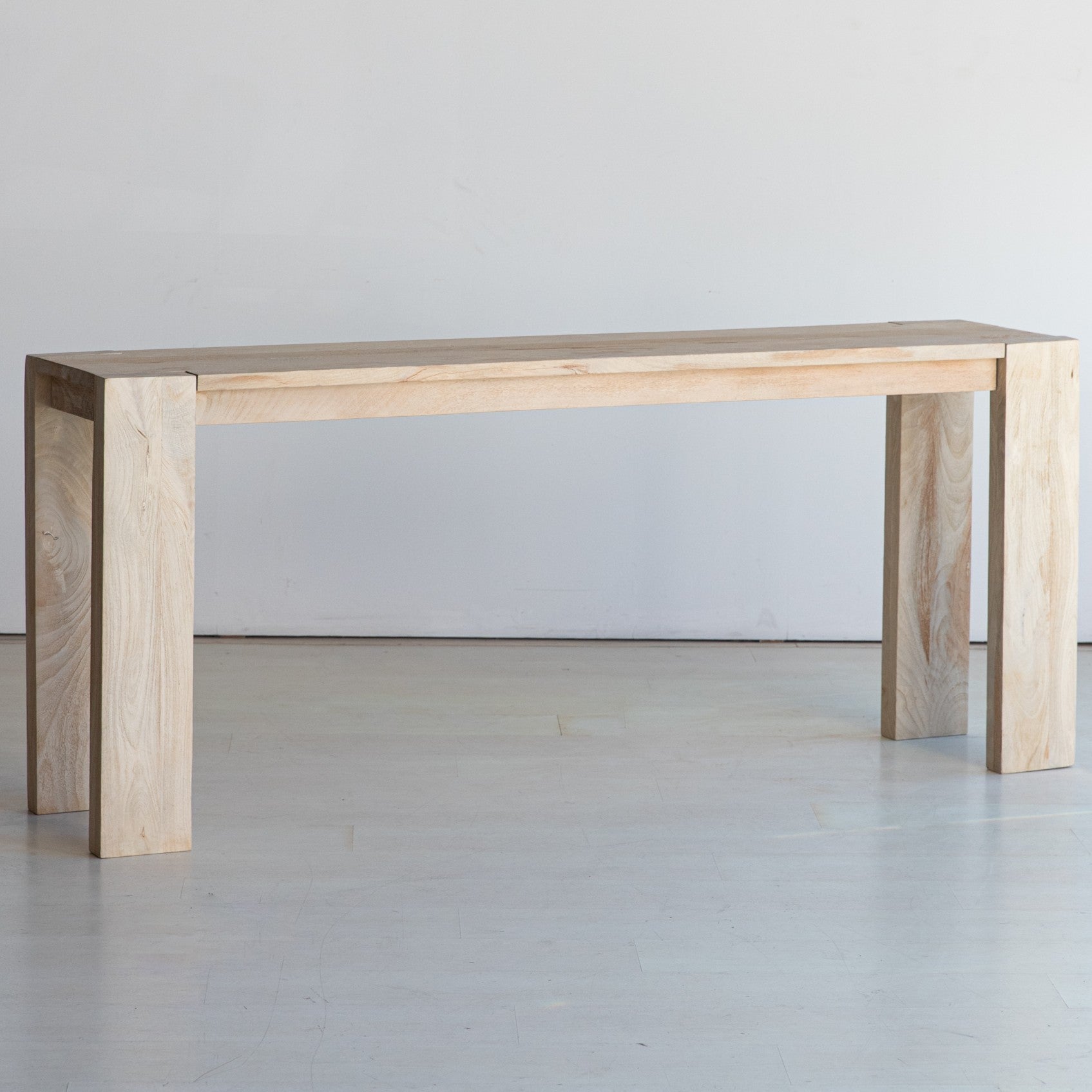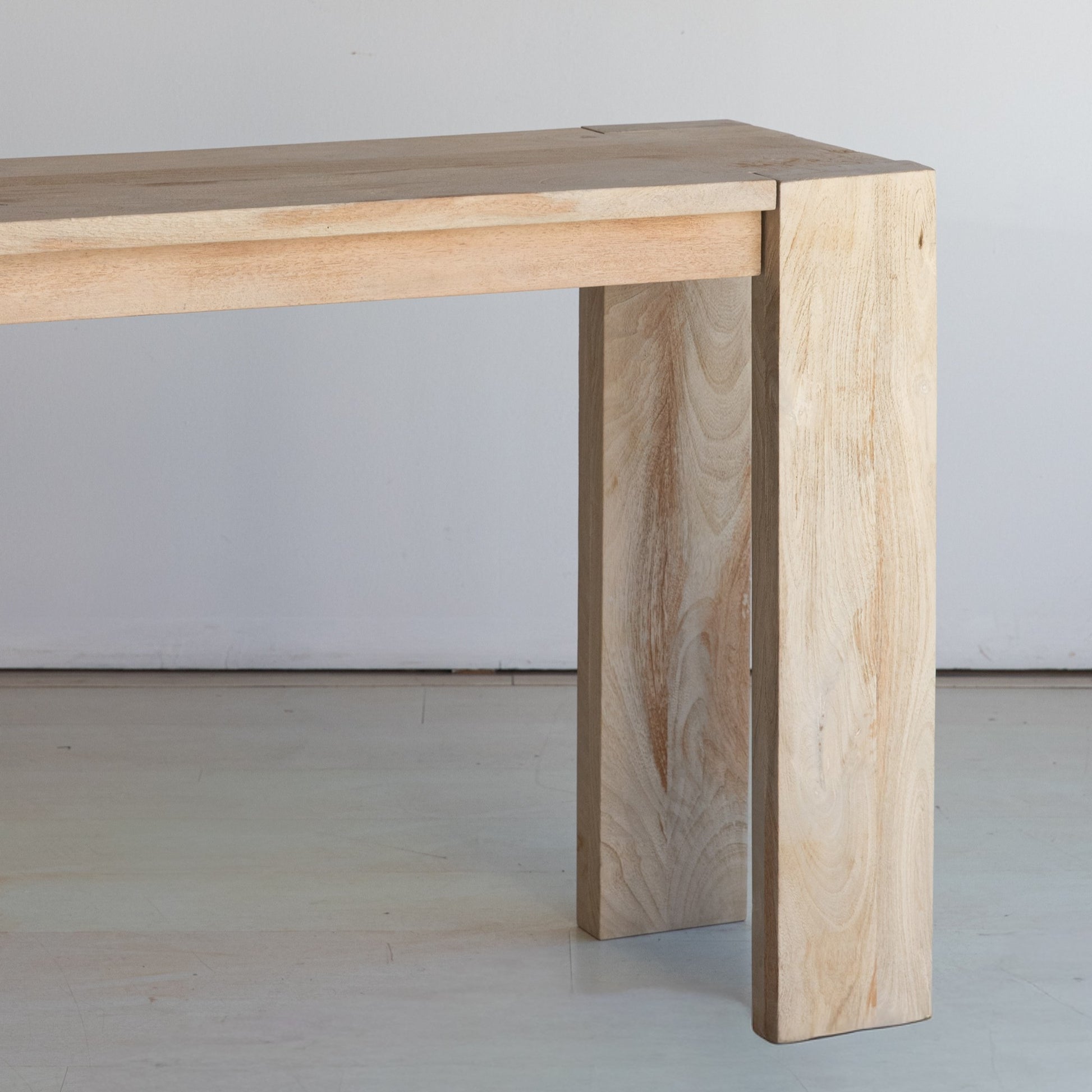 Medidas y características del modelo de la imagen: Consola de 183 cm x 40 cm x 77 cm de madera maciza de mango con acabado natural.