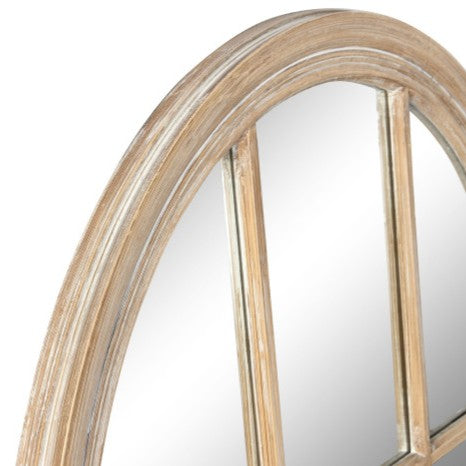 Espejo Wasir con marco de paulownia decapado y cristal de 80x4x140 cm. Este espejo presenta un diseño inspirado en ventanas antiguas, combinando madera natural con acabado envejecido y cristal transparente. Su estructura robusta y proporciones generosas lo convierten en una pieza que añade profundidad y luz a cualquier espacio. Perfecto para salones, pasillos o dormitorios que buscan un toque auténtico y nostálgico con carácter artesanal.