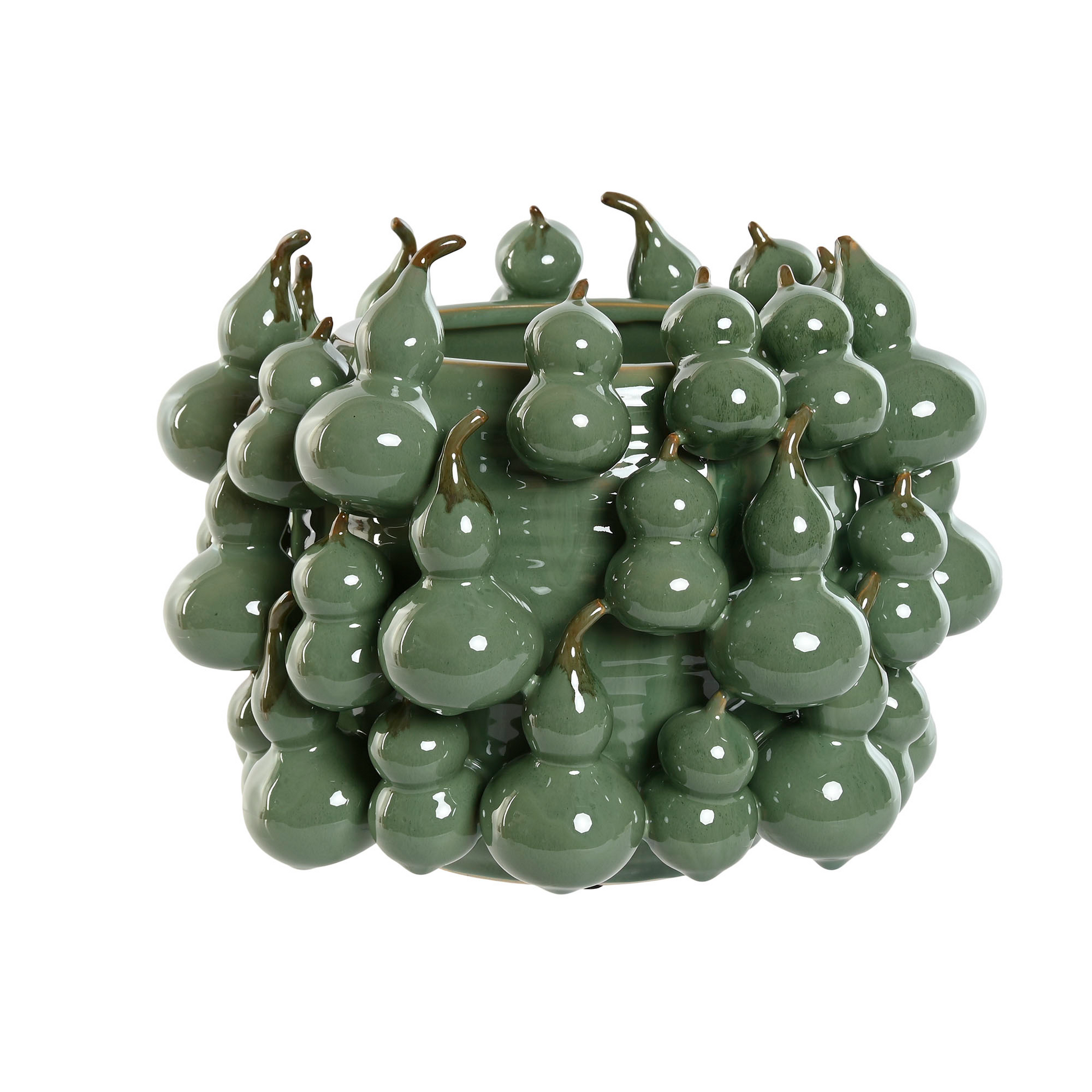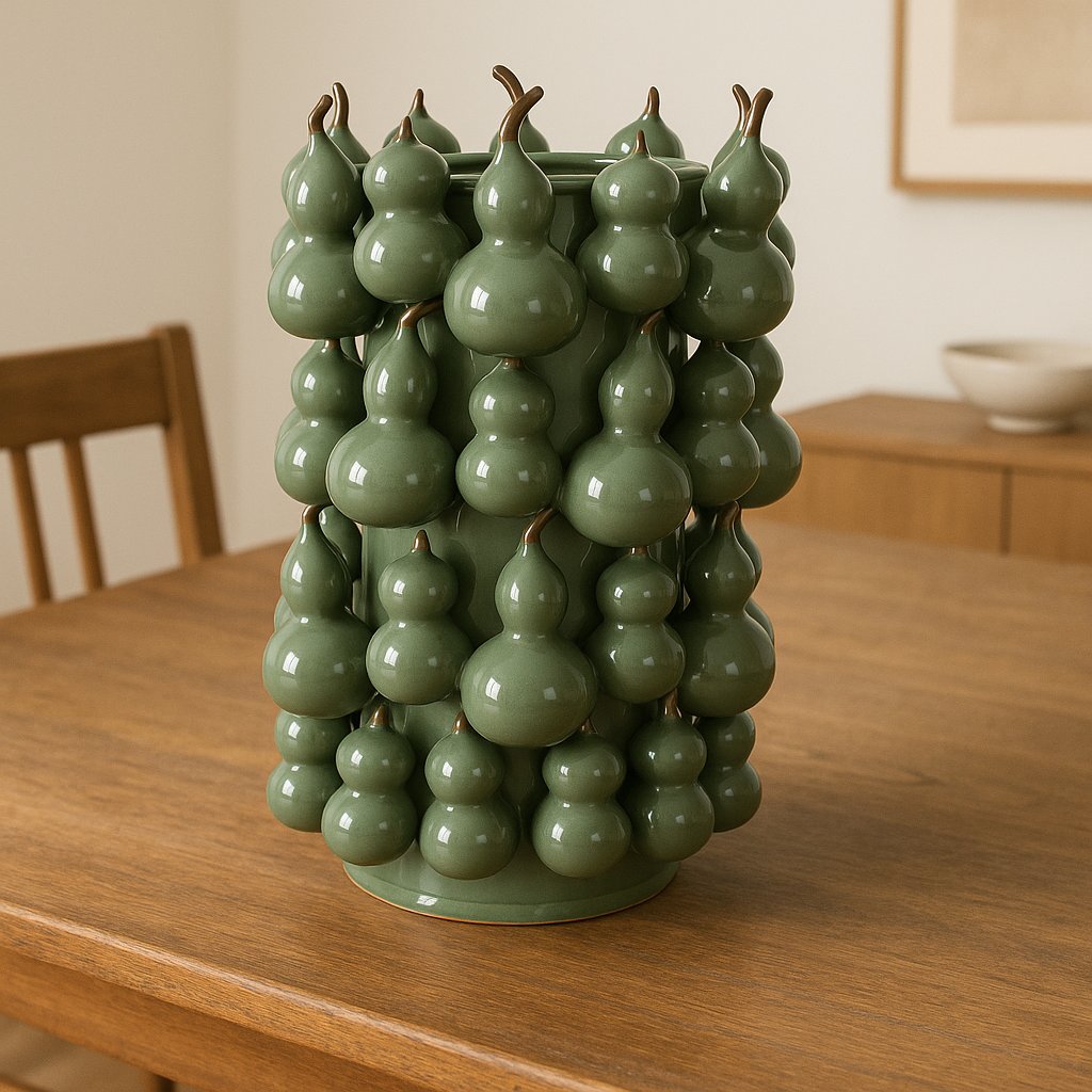 Está fabricado en gres de alta calidad. Su diseño de calabaza verde es perfecto para dar un toque de color y elegancia a cualquier espacio. Ideal para decorar y almacenar flores u objetos pequeños.