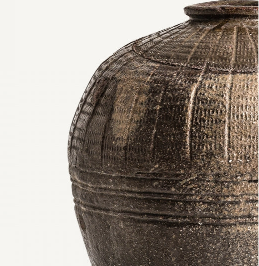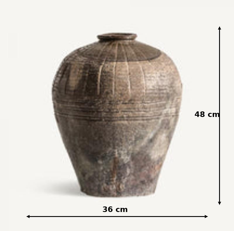 Envejecido en color chocolate. Su diseño artesanal y su aspecto rústico convierten este jarrón en una pieza ideal tanto para interiores modernos como para ambientes más clásicos o industriales.