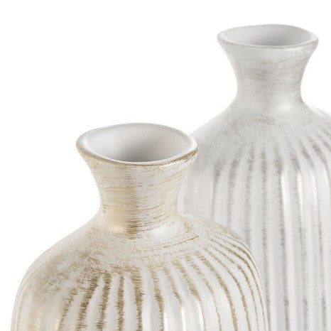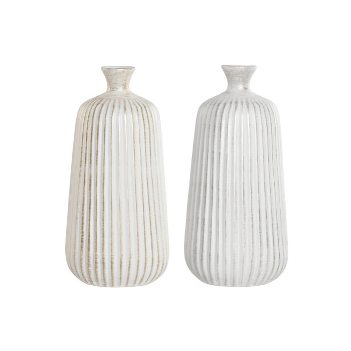Los jarrones Taluk, fabricados en gres con dimensiones de 16x16x38 cm, ofrecen un diseño robusto y versátil para cualquier espacio. Disponibles en dos acabados diferentes, permiten adaptar la decoración a distintos estilos, desde modernos hasta rústicos. Su material garantiza durabilidad y una textura natural que realza la presencia de flores o ramas secas, aportando un toque artesanal y sofisticado a la decoración interior.
