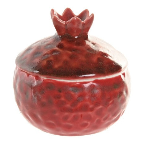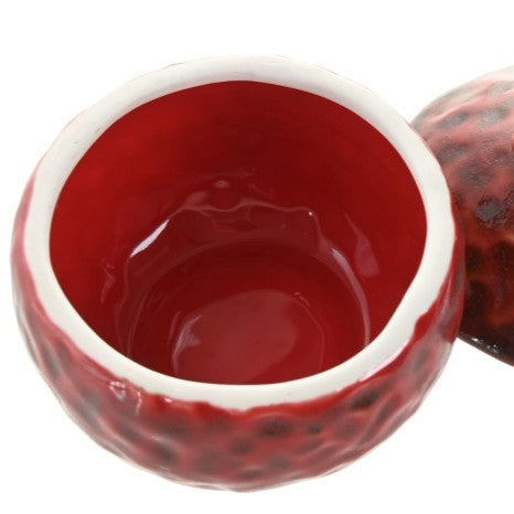 Joyero de cerámica artesanal con forma de granada, diseñado para guardar joyas y pequeños tesoros con elegancia. Sus dimensiones compactas de 9,5 x 9,5 x 9,5 cm lo hacen perfecto para mesitas de noche o tocadores. El acabado en granate profundo aporta sofisticación a cualquier espacio, mientras que la cerámica de calidad garantiza durabilidad. Pieza única que combina funcionalidad y estética decorativa, ideal para quien busca organización con carácter.