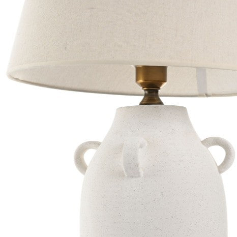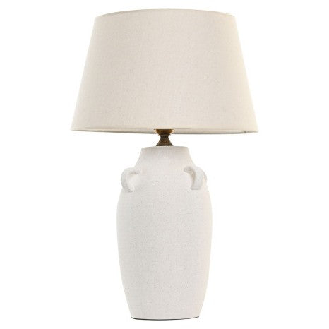 La lámpara Marbu destaca por su base de porcelana con asas decorativas y una pantalla de lino que proporciona una luz cálida y acogedora. Con unas medidas de 40x40x64 cm, esta pieza combina funcionalidad y diseño artesanal, añadiendo un toque de elegancia clásica y textura única a cualquier ambiente. Ideal para mesas auxiliares, la Marbu aporta sofisticación y calidez, adaptándose tanto a interiores modernos como tradicionales.