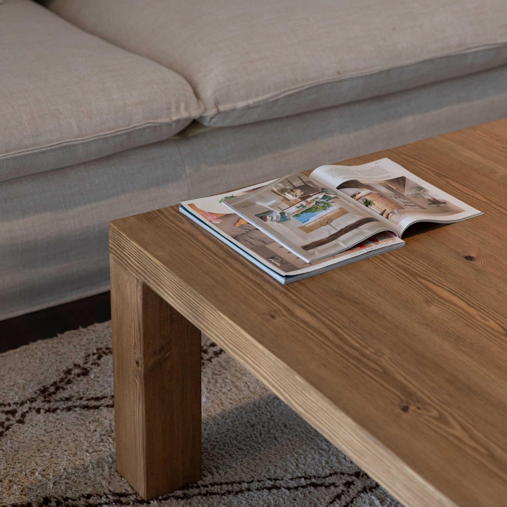 La Mesa de Centro Mambruk es una pieza artesanal que combina la calidez de la madera maciza de pino con un diseño robusto y atemporal, pensada para aportar funcionalidad, presencia y equilibrio al salón. Fabricada a mano en Barcelona, esta mesa destaca por su estructura sólida, su estética limpia y la posibilidad de personalización en medidas y acabados.