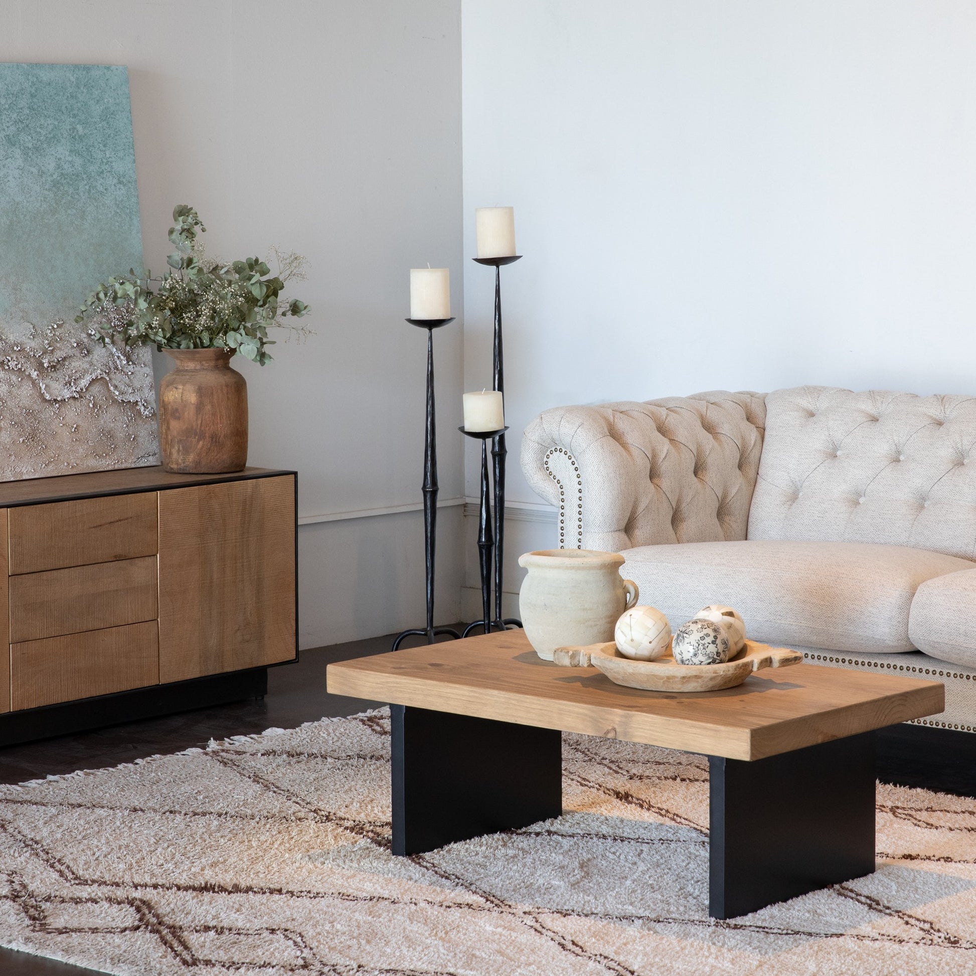 Diseñada para adaptarse a diferentes espacios, la Mesa de Centro Sankur ofrece una superficie resistente y funcional, ideal para el uso diario. Su estructura con patas de chapa de hierro aporta estabilidad y un marcado estilo industrial, mientras que el sobre de madera maciza equilibra el conjunto con calidez y presencia visual, integrándose con facilidad en ambientes industriales, contemporáneos o rústicos.