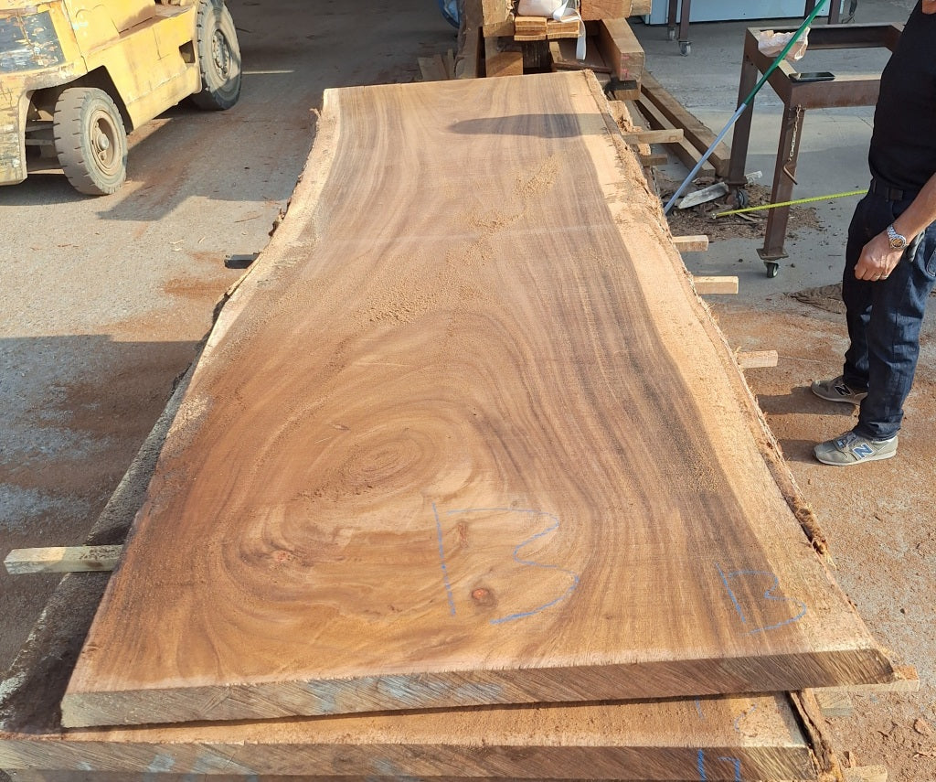 - Sobre de madera maciza con canto natural: Cada mesa es diferente, resaltando la autenticidad del tablón seleccionado.