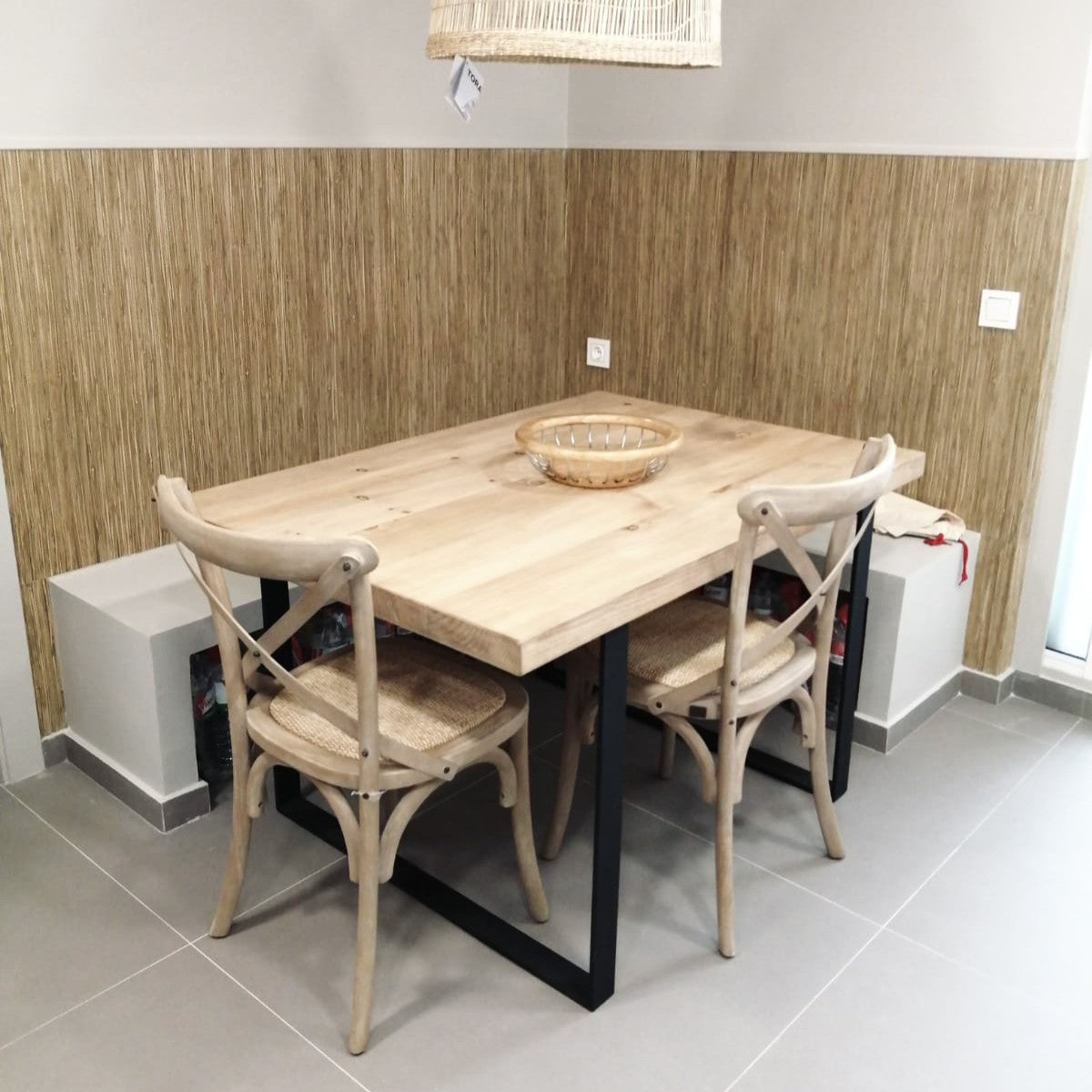 La Mesa de Comedor Sut es una pieza artesanal que combina la calidez de la madera maciza de pino con la solidez del hierro, dando forma a un diseño industrial robusto y elegante, pensado para aportar carácter y funcionalidad al comedor. Fabricada a mano en Barcelona, esta mesa destaca por la calidad de sus materiales, su estética equilibrada y su versatilidad en medidas y acabados.