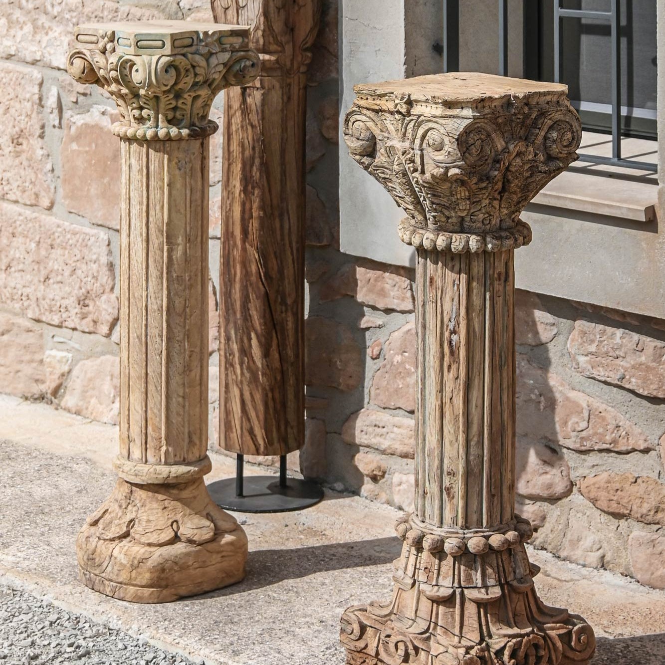 La peana antigua de origen indio es una columna de madera tallada a mano que destaca por su carácter único y auténtico. Su diseño artesanal y detallado aporta un toque de historia, elegancia y solidez a cualquier espacio, convirtiéndose en una base perfecta para realzar esculturas, jarrones u objetos decorativos.