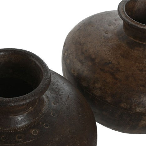 La vasija Walua esta hecha de hierro forjado con dimensiones versátiles (28x28x25 cm) que fusiona robustez industrial con elegancia funcional. Su construcción en hierro macizo garantiza estabilidad y longevidad, mientras que el acabado artesanal desarrolla una pátina característica con el tiempo. Apta como macetero para plantas de mediano tamaño, contenedor decorativo o elemento de almacenamiento con presencia. Su diseño geométrico se integra perfectamente en espacios con estética vintage industrial, aportando autenticidad y carácter a salones, terrazas o jardines.